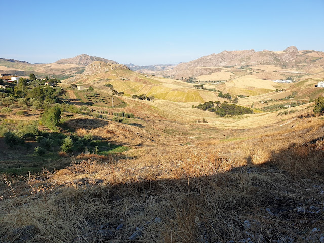 Meravigliosa la campagna illuminata dal sole del mattino dal balcone panoramico di Sutera. Bisogna attraversare tutta la cittadina per scendere sulla strada che la separano dal centro di Campofranco.